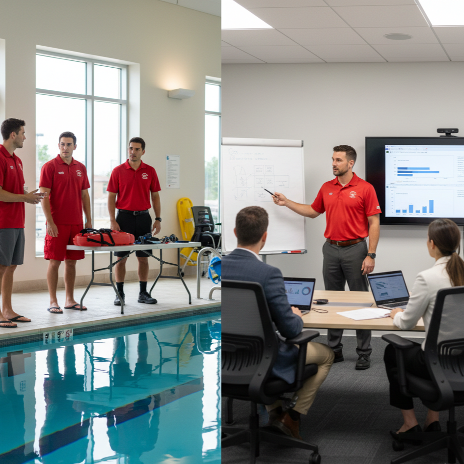 Flexible, Lifesaving Society–certified training for lifeguards, aquatic leadership, and workplace safety — delivered online, hybrid, or onsite across Ontario.